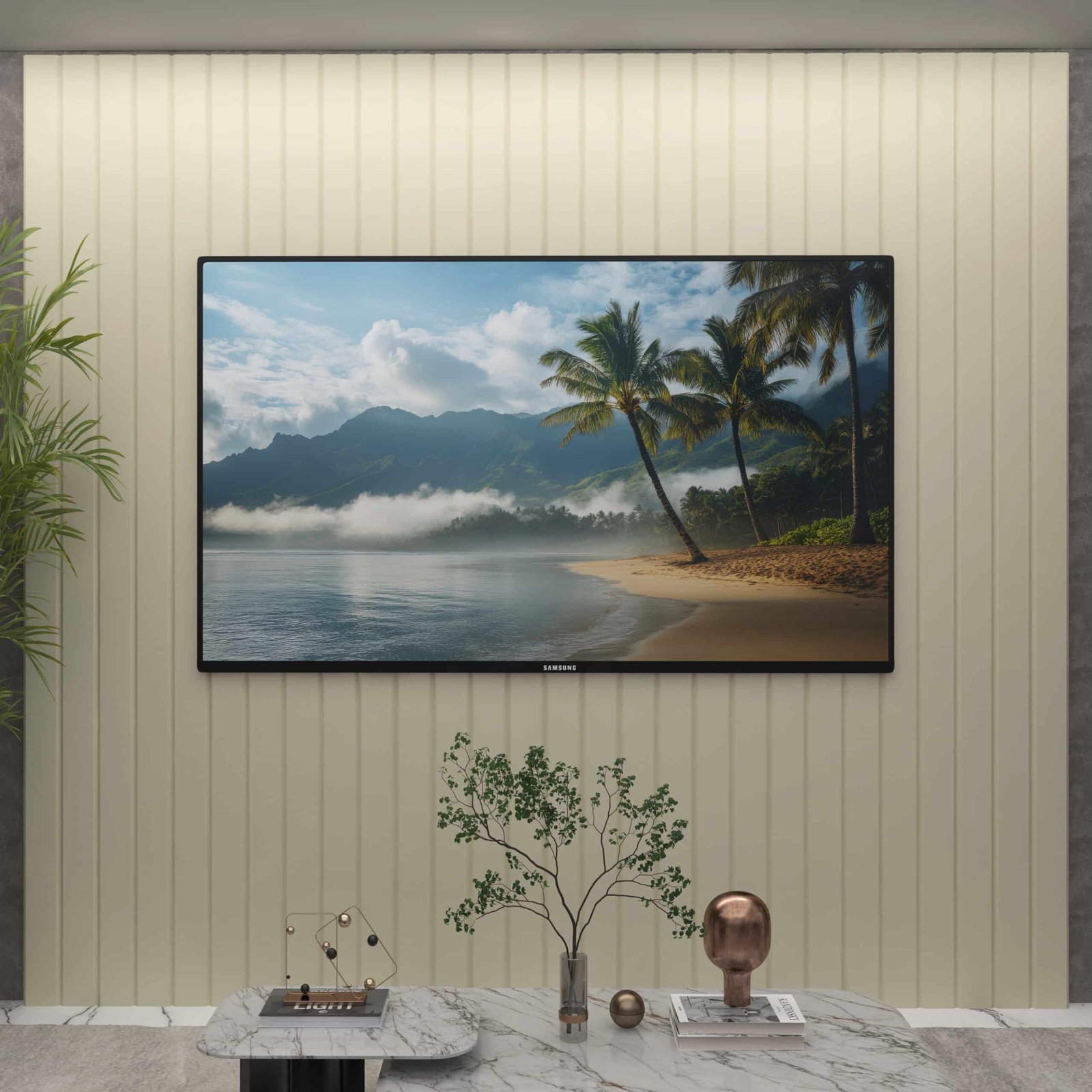 – Design com painel contínuo, permitindo melhor alinhamento visual da TV ao conjunto