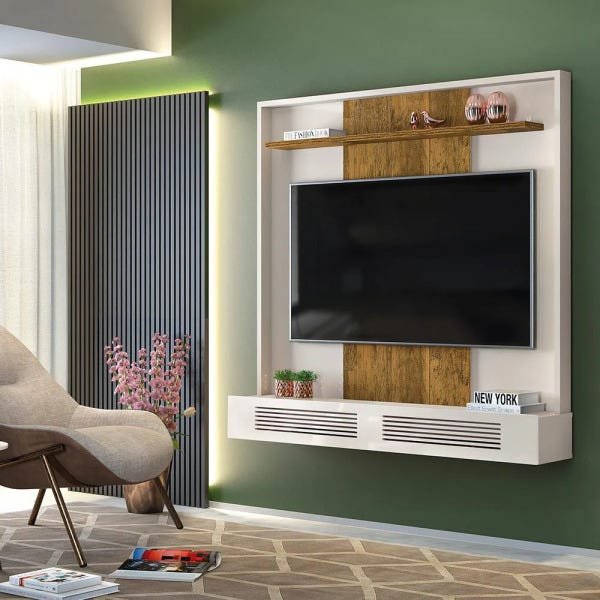 | MATERIAL | O Painel Selene foi inspirado em elementos de design contemporâneo, pensando em praticidade para o seu dia a dia e modernidade para sua sala de estar. Por ser suspenso você terá o espaço abaixo da bancada livre para utilizar da melhor forma na organização e decoração, este é um produto totalmente versátil que pode ser utilizado como painel para sala, quarto ou até mesmo para a área de lazer. Atributos como a porta frisada e a prateleira superior de 25mm dão um toque de requinte e valorizam o seu ambiente. No espaço dentro do balcão acomode seus aparelhos eletrônicos como DVD, receptor de antena, entre outros, os frisos da porta são vazados e permitem a passagem do sinal dos aparelhos, assim você manterá tudo organizado. O painel é reforçado com travessas traseiras e suporta até 40kg, acomodando TVs de até 60 polegadas, com instalação obrigatória no painel. Pense em todos estes benefícios e veja se o Painel Selene não é o produto que você estava procurando ! |