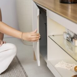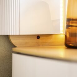 – Duas portas MDF 15 mm com dobradiças metálicas slow motion e detalhe chanfrado