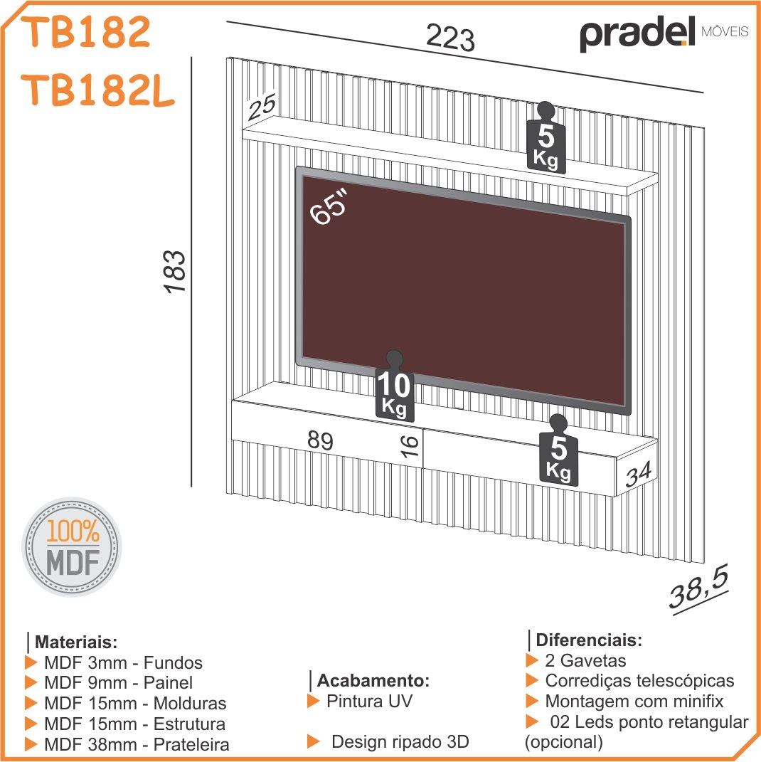 Painel Suspenso até 65″ TB182L Off White/Freijó – DALLA COSTA