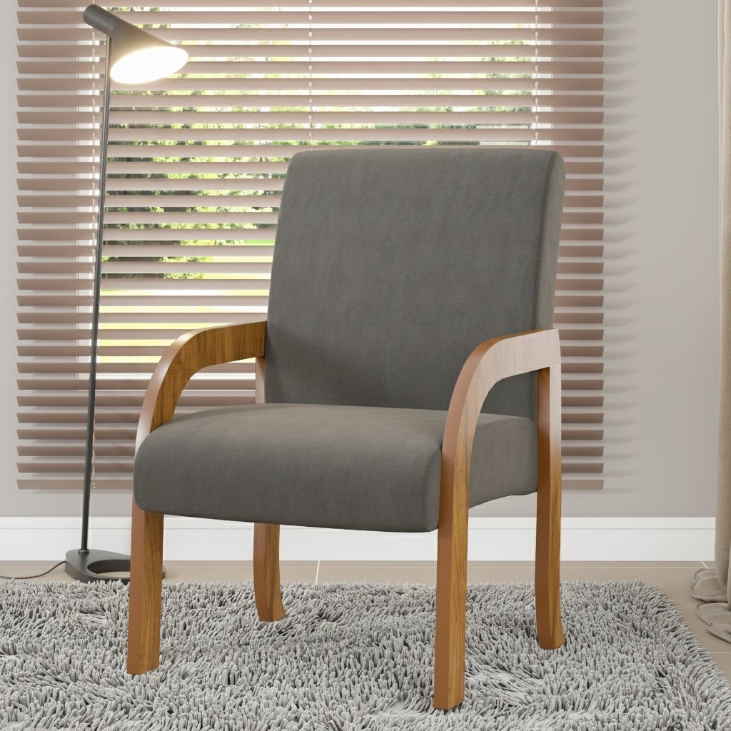 Poltrona Vand Mel/Veludo Cinza Grafite – VIERO MÓVEIS