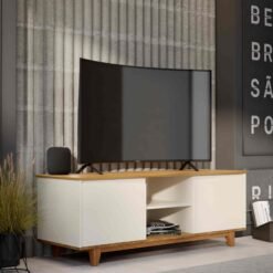 Rack Bancada Flow Off White/Freijó – EJ MÓVEIS