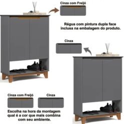 Sapateira Hall Flow Cinza/Freijó – EJ MÓVEIS