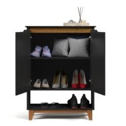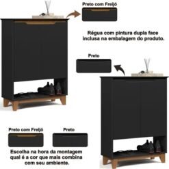 Sapateira Hall Flow Preto/Freijó – EJ MÓVEIS