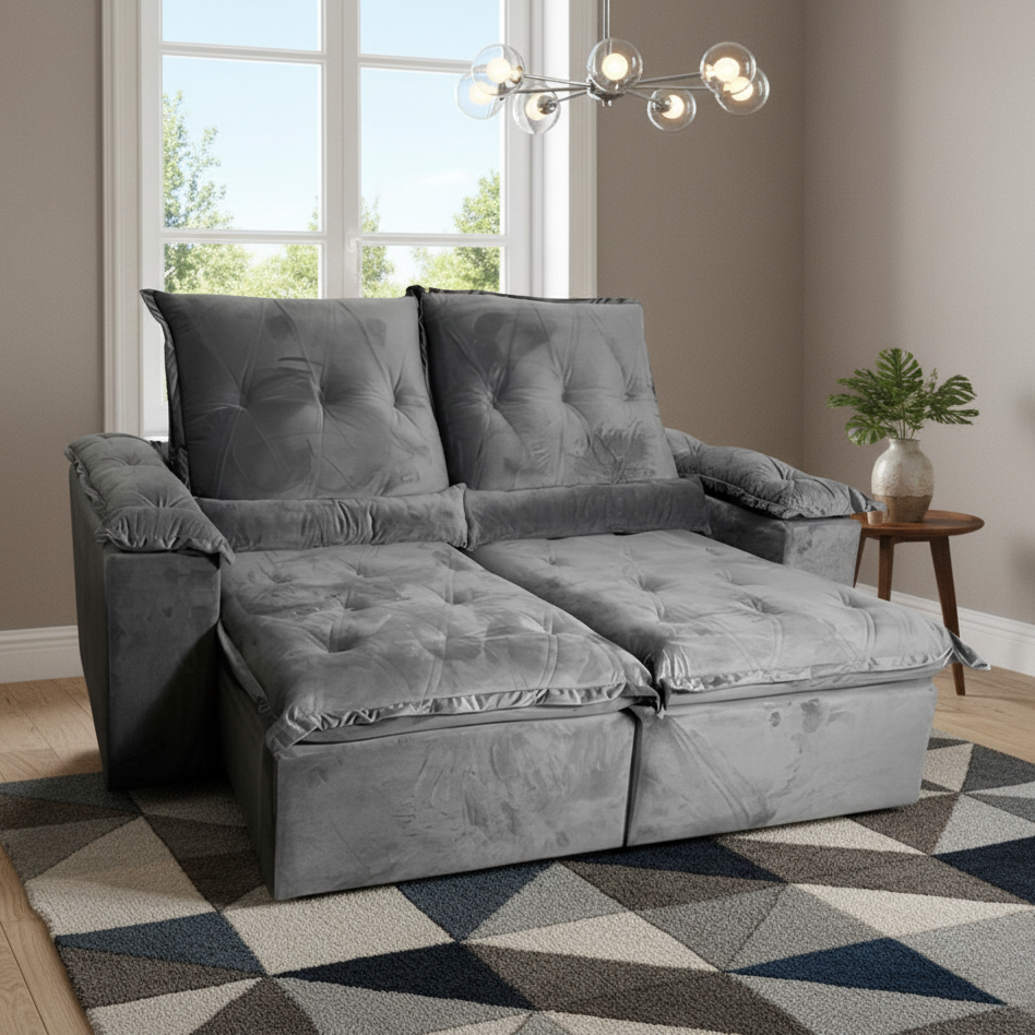 Sofá Retrátil e Reclinável Londrina 2,30 Veludo Cinza Grafite – IMPÉRIO ESTOFADOS