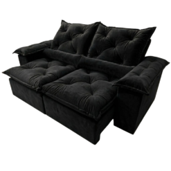 Sofá Retrátil e Reclinável Grécia 2,00 m Veludo Preto – QUINE ESTOFADOS