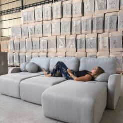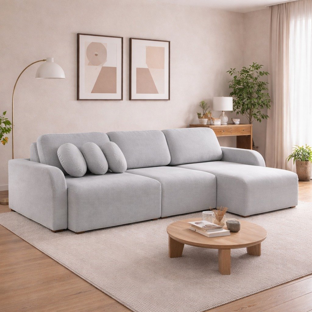 Sofá Cama Retrátil Bellagio 3,00 m Linho Cinza 19 – CONFORT LAR ESTOFADOS