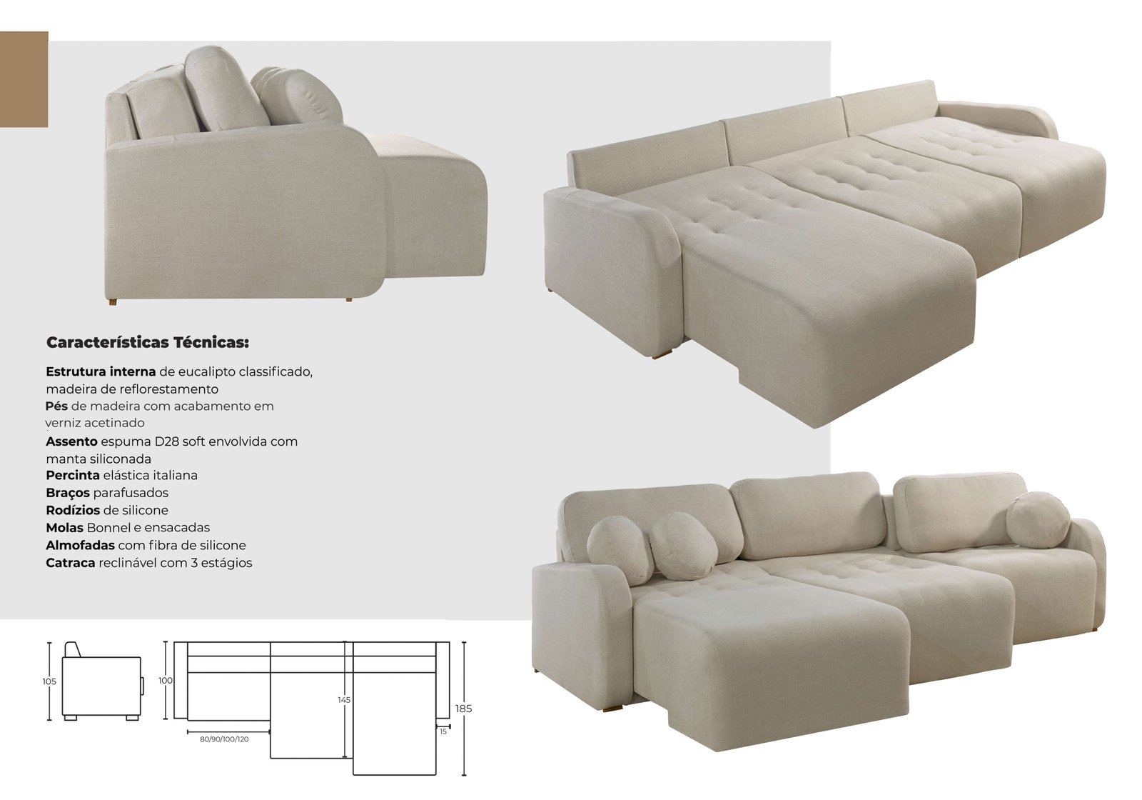 Profundidade da chaise: 185 cm