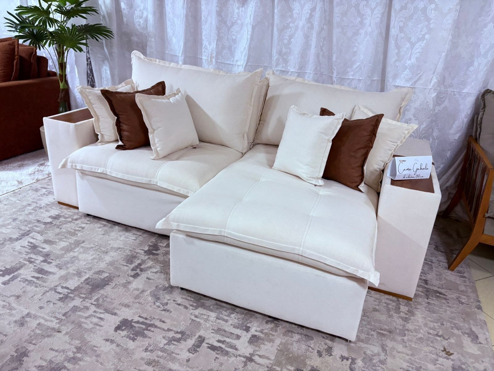 SOFA CAMA TEBAS/THEBAS/GABRIELA 2,90 M LINHO BEGE 313/COURINO DALAS – ZARAT ESTOFADOS