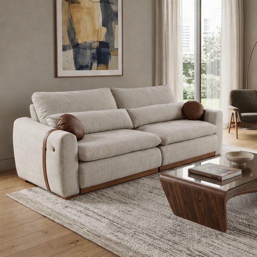 Sofá Cama Retrátil Victoria 2,30 m Linho Bege – ARCA ESTOFADOS