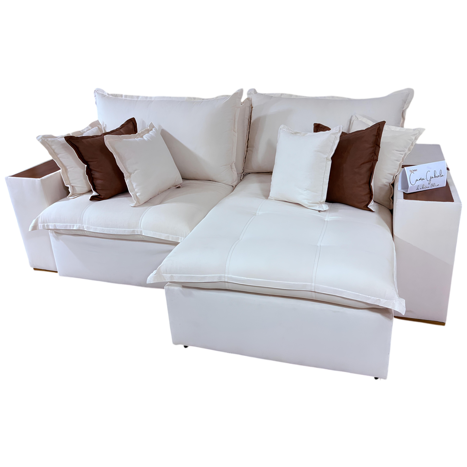 Sofá Cama Thebas/Gabriela 2,50 m Linho Bege 313/Courino Dalas – ZARAT ESTOFADOS