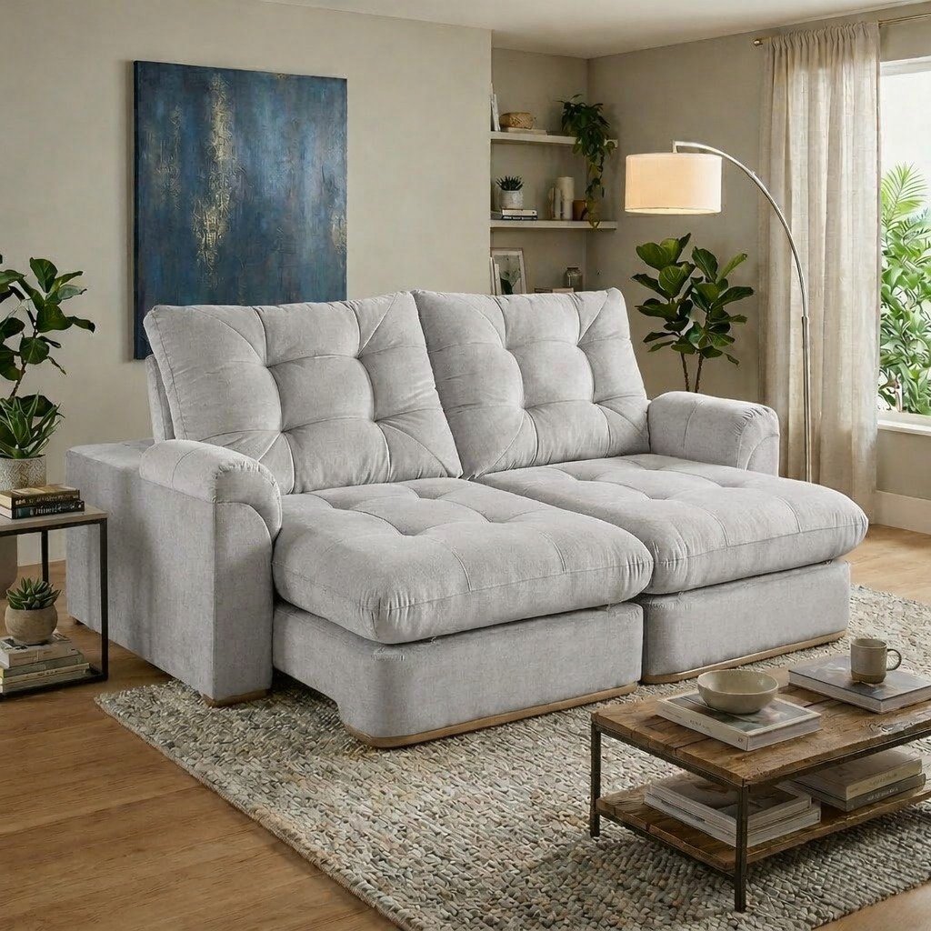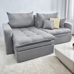 Sofá Retrátil e Reclinável Aquiles 2,40 m Linho Cinza Prata 2005 – D’VITRINE