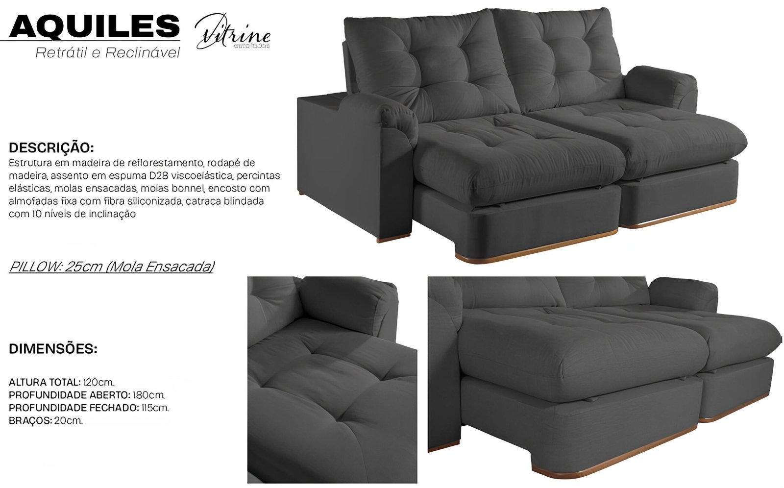 – Assento com pillow top 25 cm e em espuma D28 viscoelástica