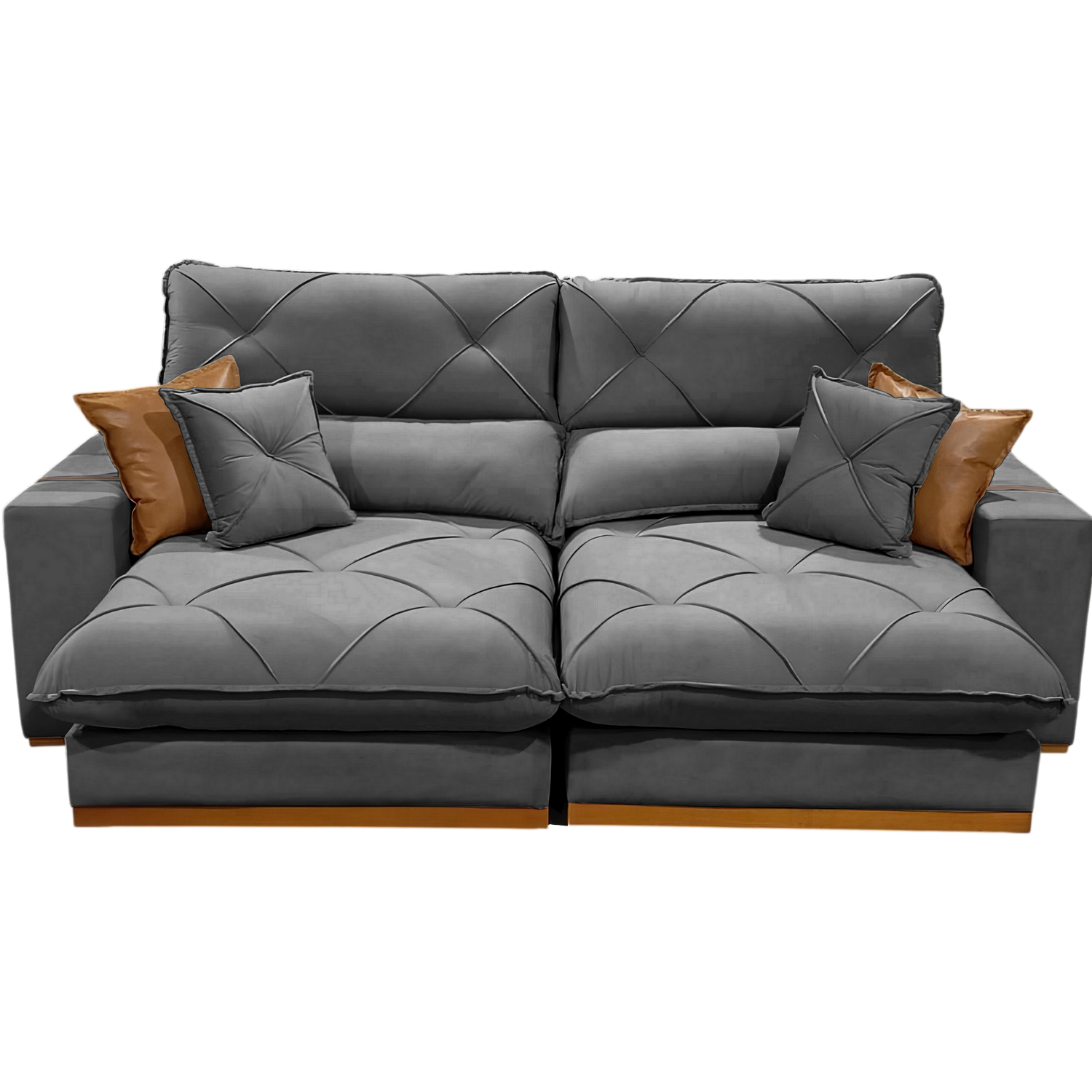 Sofá Retrátil e Reclinável Aquiles/Gran Bello Veludo Cinza 101 – ZARAT ESTOFADOS
