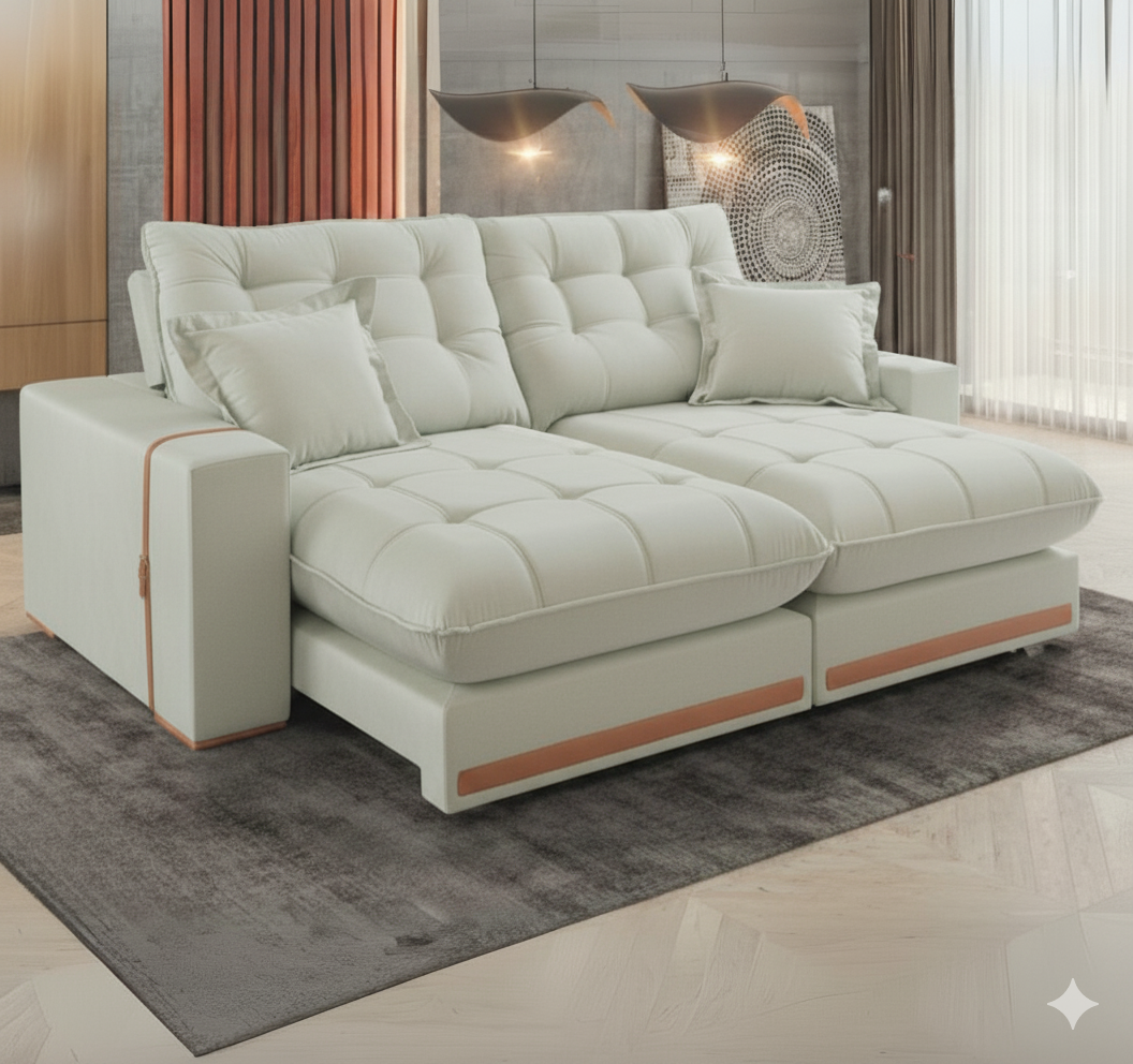 Sofá Retrátil e Reclinável Ártemis 017 2,50 m Veludo Marfim – VICAM ESTOFADOS