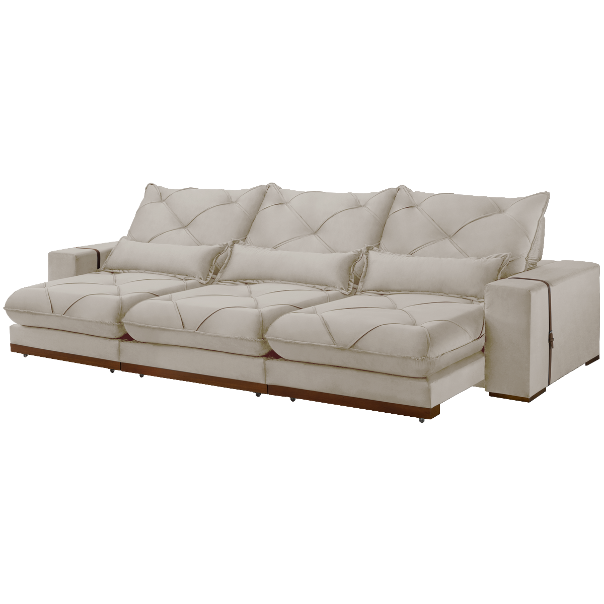 Sofá Retrátil e Reclinável Diamante/Bahia 3,50 m Veludo Bege – PLENA ESTOFADOS