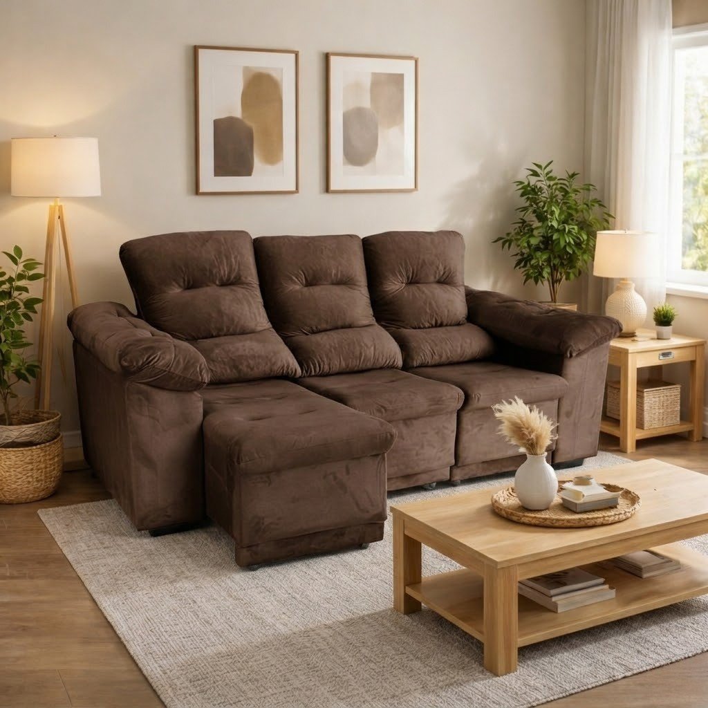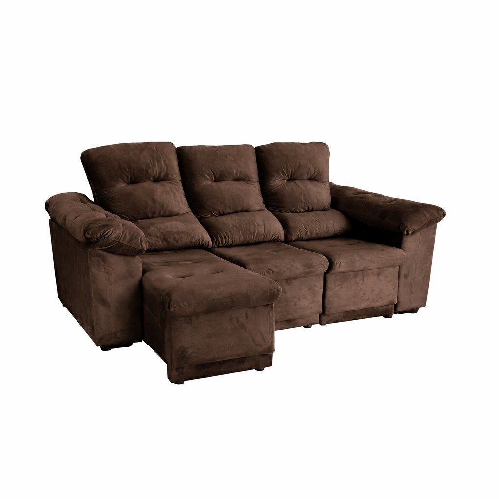 Sofá Retrátil e Reclinável Dinamarca 2,10 m Veludo Marrom – FLASH ESTOFADOS