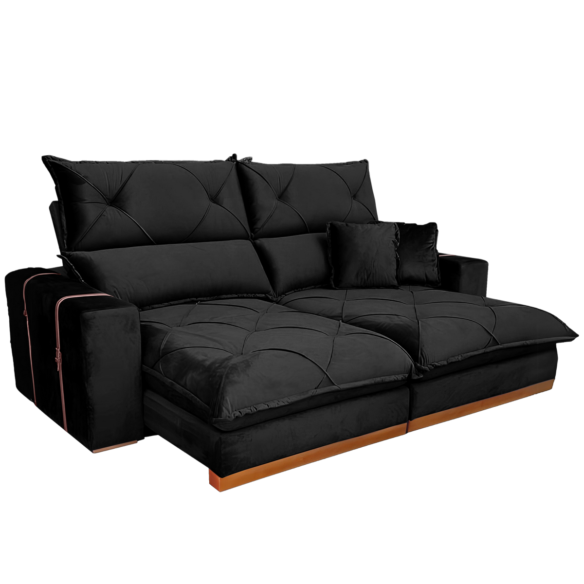 Sofá Retrátil e Reclinável Gran Bello 2,50 m Veludo Preto – QUINE ESTOFADOS