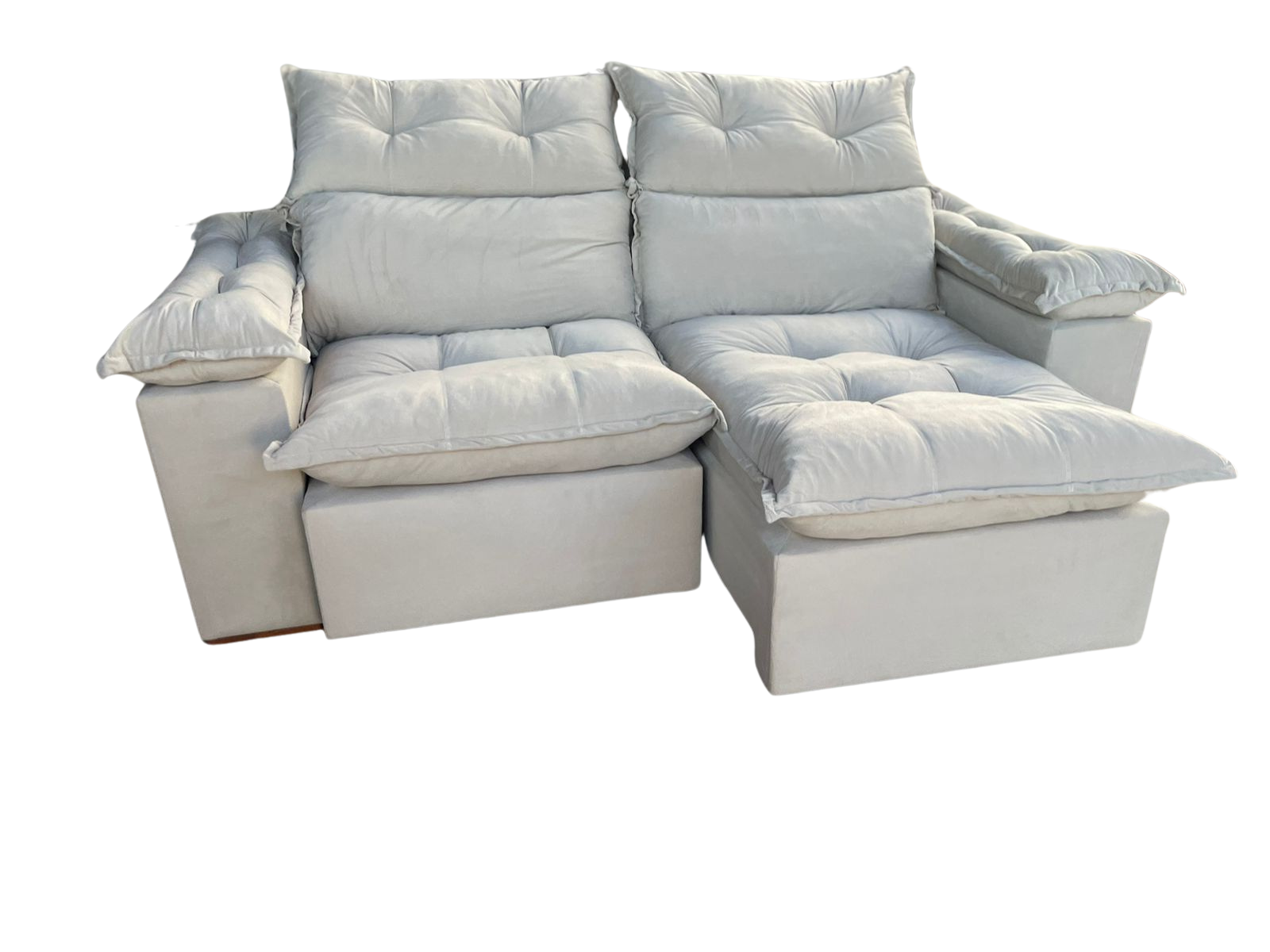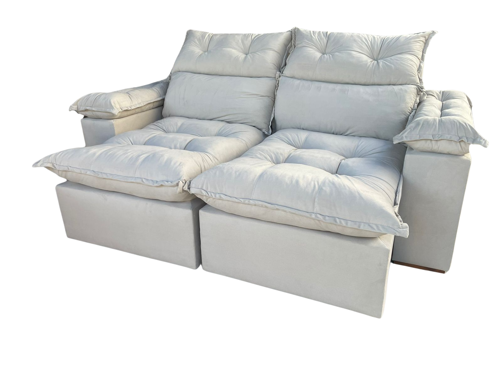 Sofá Retrátil e Reclinável Gran Paladium (Pillow) 2,50 m Veludo Azul – IMPÉRIO DECOR