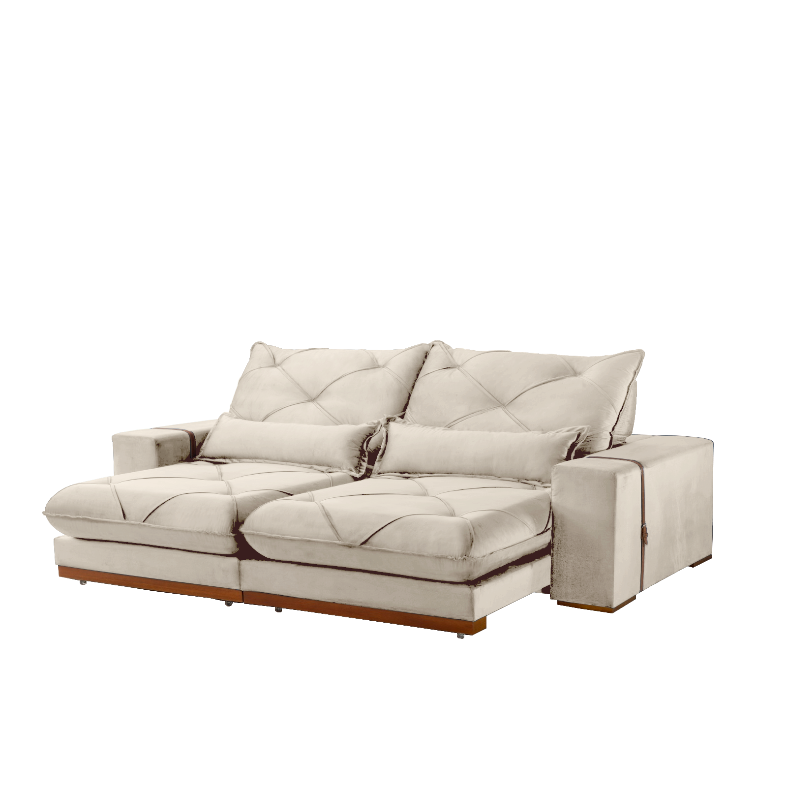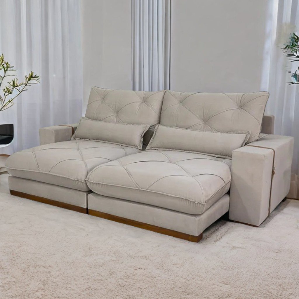 Sofá Retrátil e Reclinável Luanda/Isabella 2,50 m Veludo Bege – TREVO ESTOFADOS
