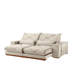 Sofá Retrátil e Reclinável Luanda 2,50 m Veludo Bege 015 – TREVO ESTOFADOS