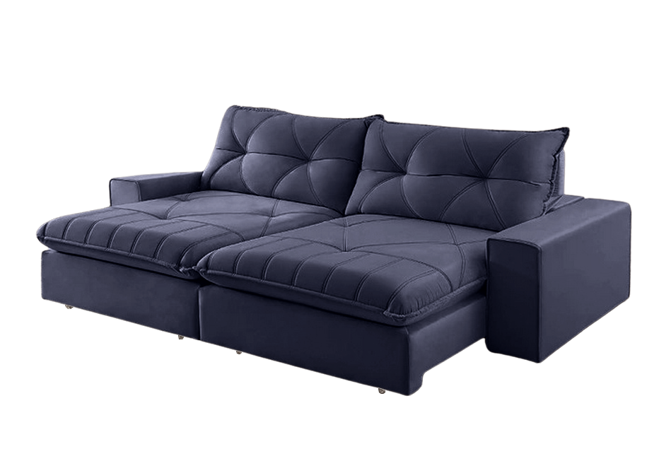 Sofá Retrátil e Reclinável Marfim Veludo Azul – TREVO ESTOFADOS