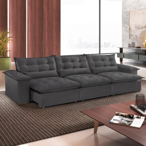 Sofá Retrátil e Reclinável Niger 3,10 m Veludo Cinza B010 – TREVO ESTOFADOS