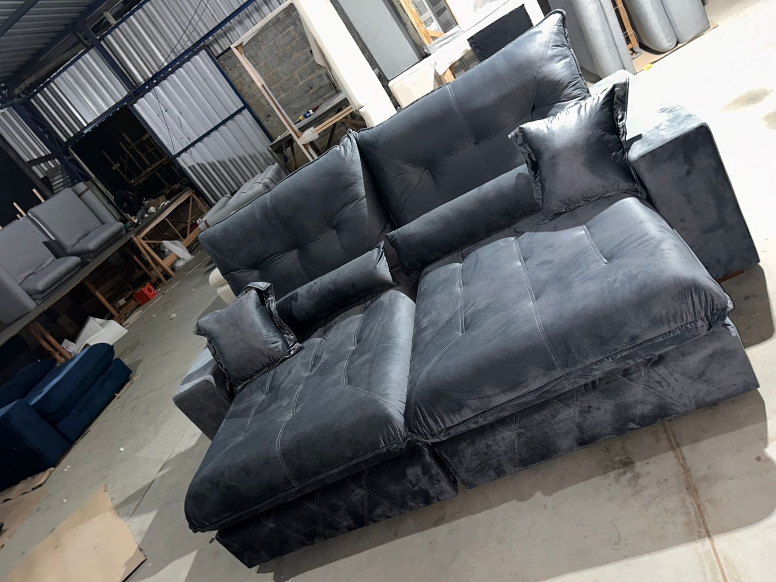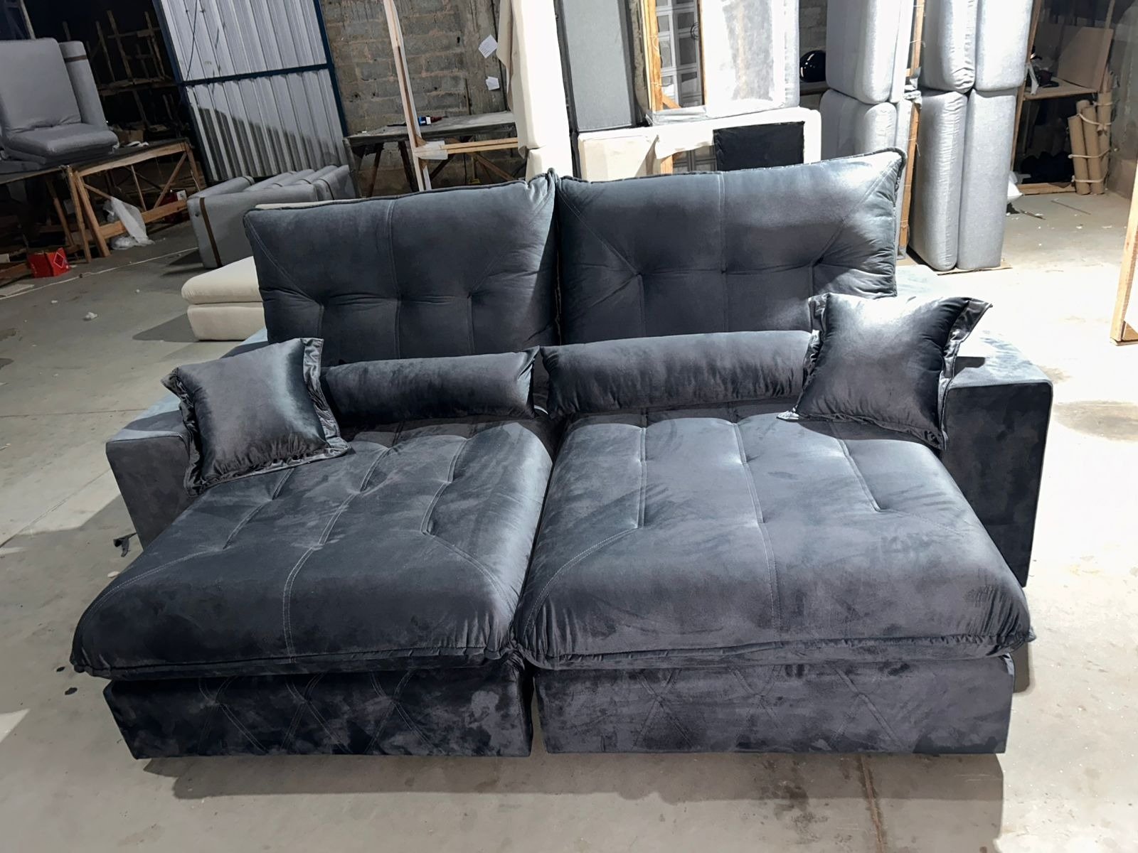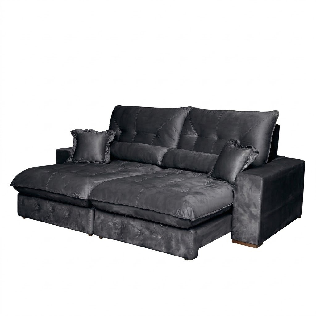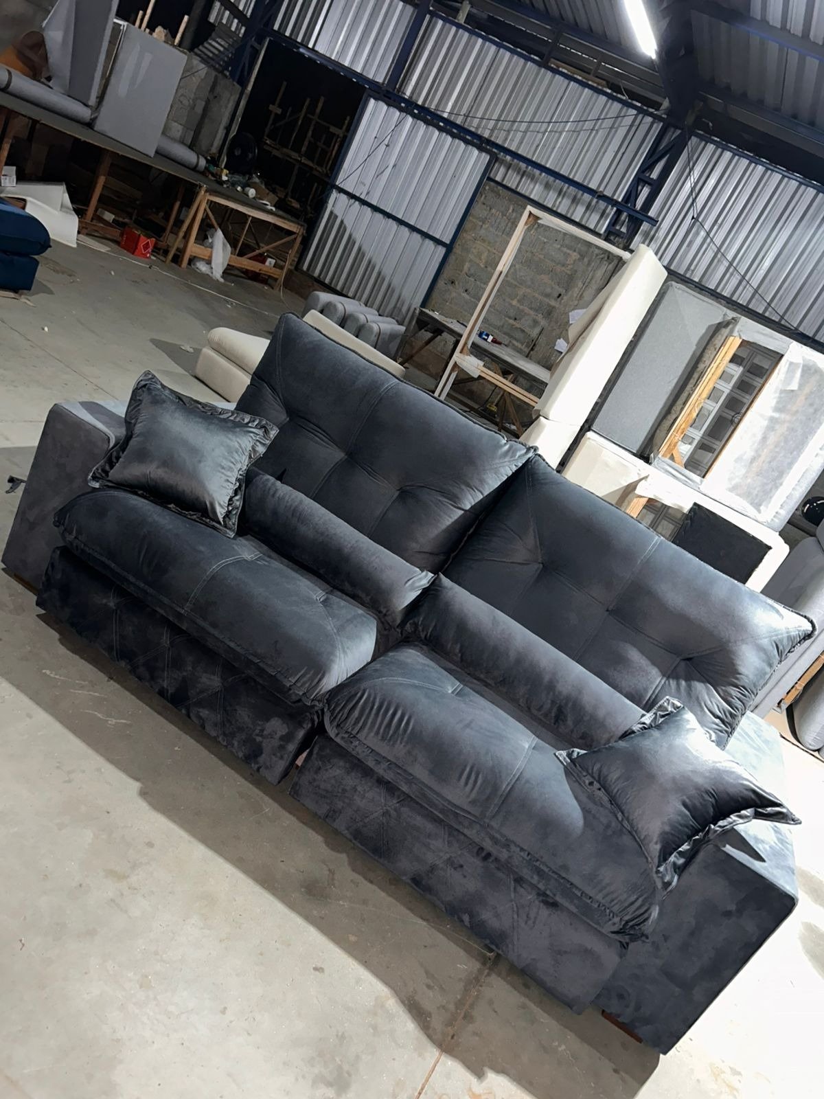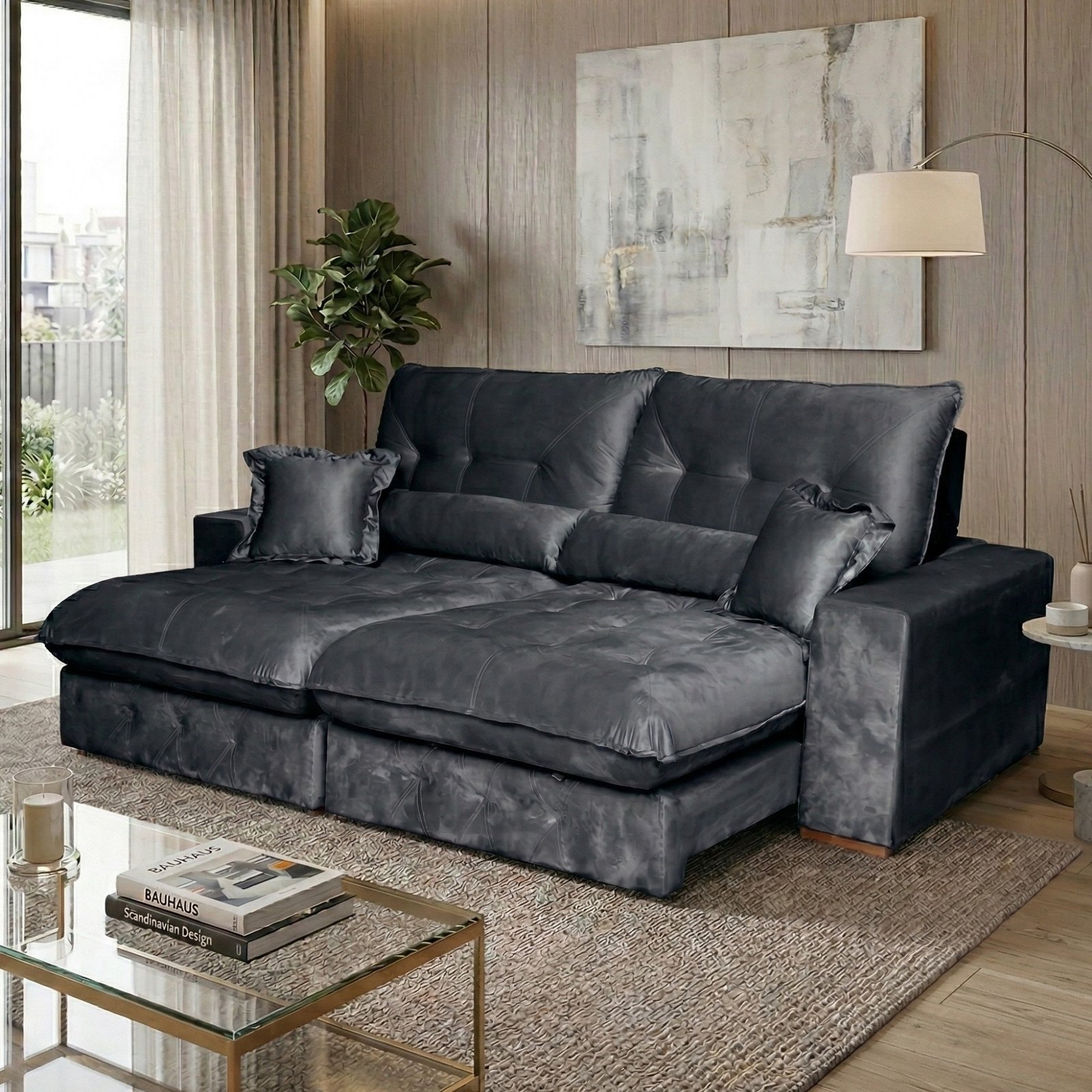 Sofá Retrátil e Reclinável Noruega 2,50 m Veludo Cinza Grafite – ARCA ESTOFADOS