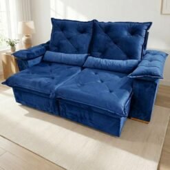 Sofá Retrátil e Reclinável Porto Madero 2,00 m Veludo Azul – IMPERIAL DECOR