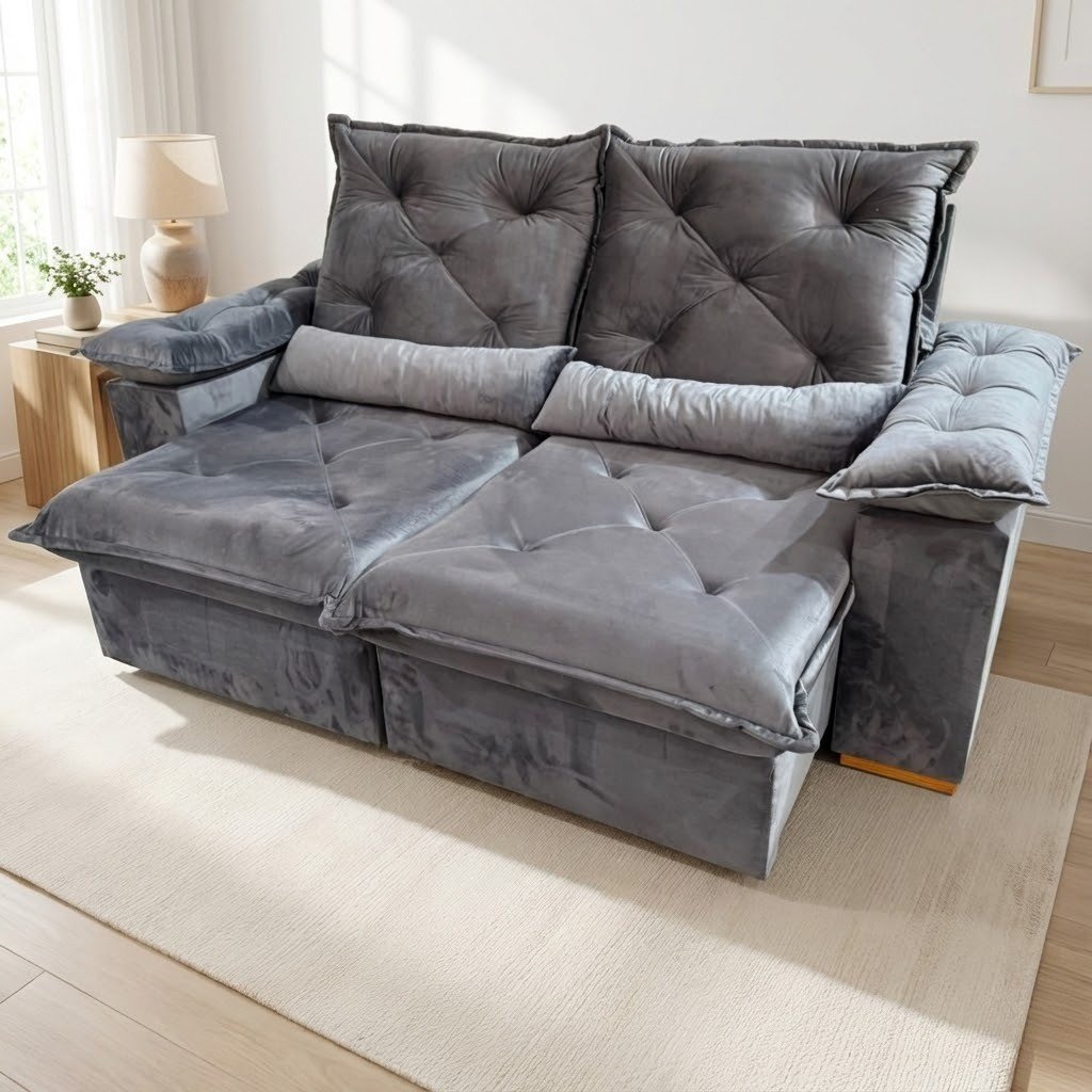 Sofá Retrátil e Reclinável Porto Madero 2,00 m Veludo Cinza Grafite – IMPERIAL DECOR