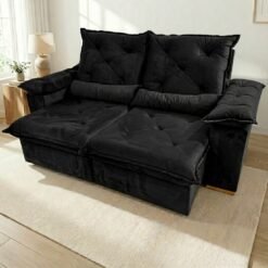 Sofá Retrátil e Reclinável Porto Madero 2,00 m Veludo Preto – IMPERIAL DECOR