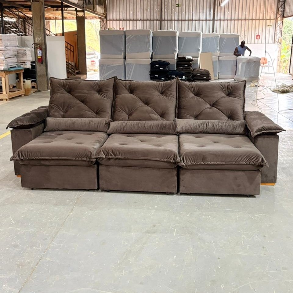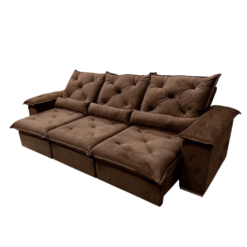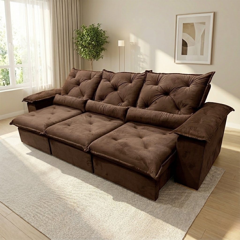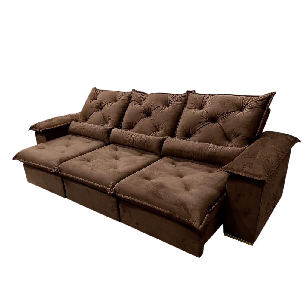 Sofá Retrátil e Reclinável Porto Madero/Brasão 2,75 m Veludo Marrom – IMPERIAL DECOR