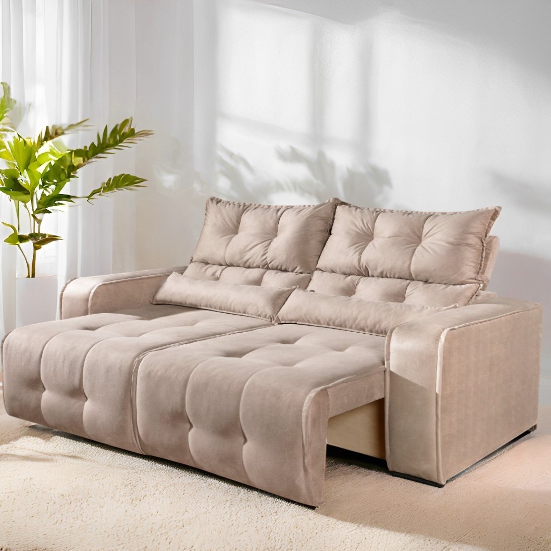 Sofá Retrátil e Reclinável Premier/Minas 2,00 m Veludo Bege 512 – DECORAR ESTOFADOS