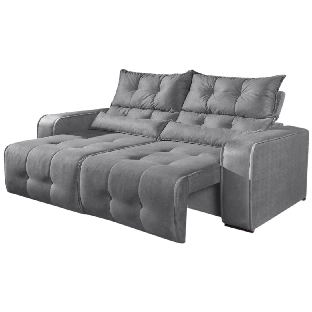 Sofá Retrátil e Reclinável Premier 2,00 m Veludo Cinza – DECORAR ESTOFADOS