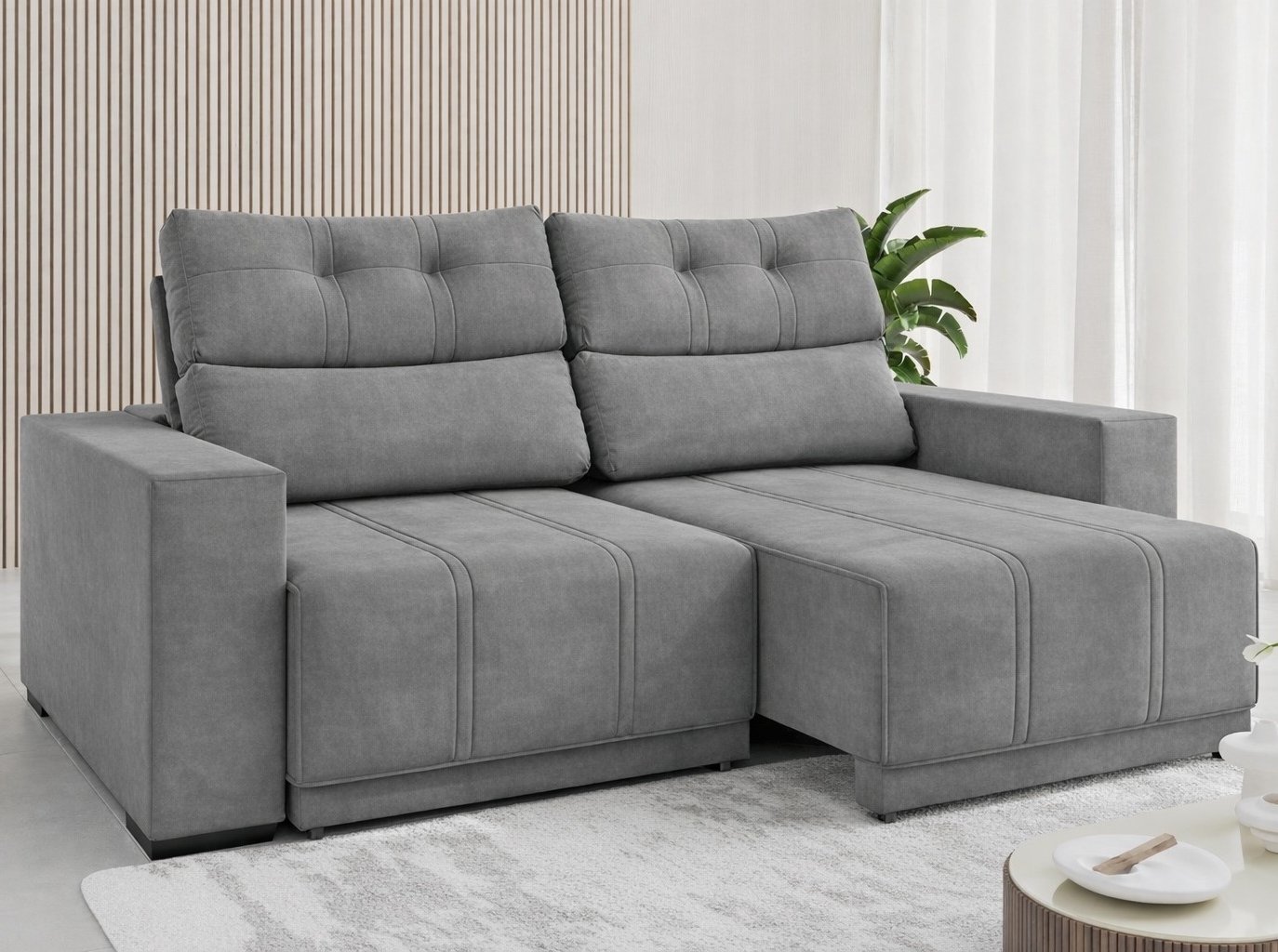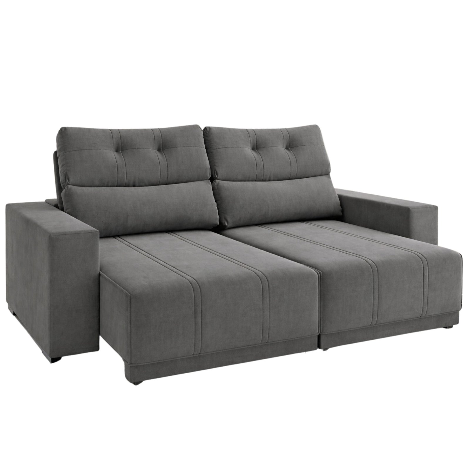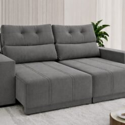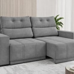 Sofá Retrátil e Reclinável Royal 2,00 m Veludo Cinza Grafite – VIERO MÓVEIS