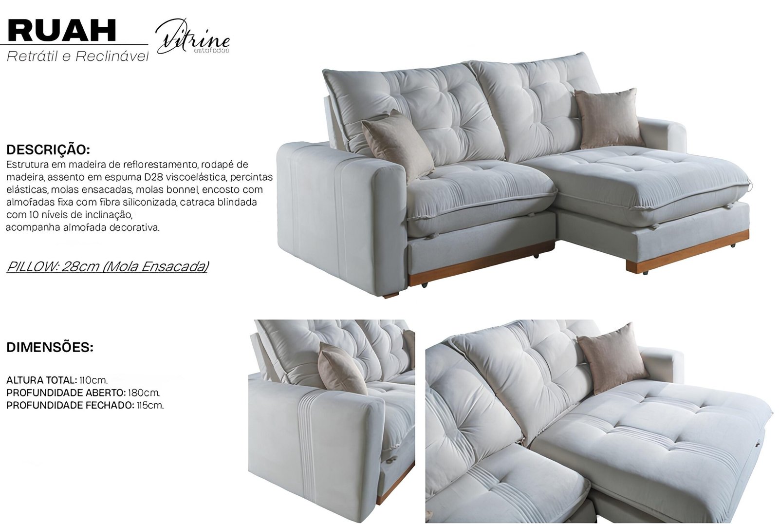 Sofá Retrátil e Reclinável Ruah 2,50 m Linho Cinza Grafite 2005 – D’VITRINE