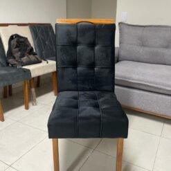Mesa Recife 120 Cinamomo Laminado com 4 Cadeiras Sophia Veludo Cinza Grafite – CEL MÓVEIS + WM DECOR